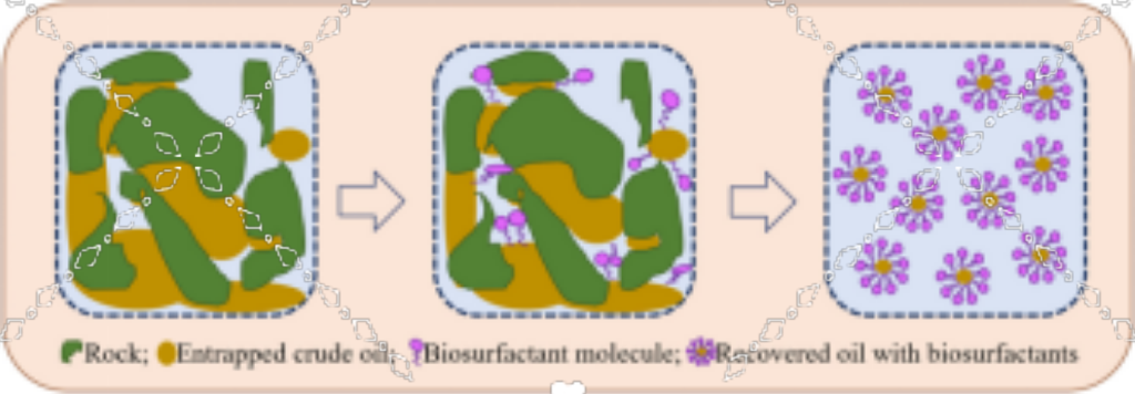 大連知微聚焦合成生物學驅(qū)動的生物采油創(chuàng)新技術(shù),開發(fā)出多種非模式生物底盤,實現(xiàn)了規(guī)?;纳锉砻婊钚詣┕I(yè)生產(chǎn),研制與其配套的精細化工新材料—生物基驅(qū)油劑。生物基驅(qū)油劑改變原油之間的界面張力,使油相的潤濕接觸角增加,原油的潤濕張力和附著張力降低,使原油粘附力降低,洗油能力提高。